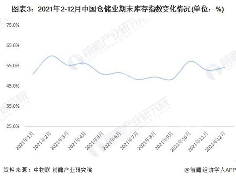 根據(jù)中國(guó)物流與采購(gòu)聯(lián)合數(shù)據(jù),2021年1-12月,中國(guó)倉(cāng)儲(chǔ)業(yè)期末庫(kù)存指數(shù)均值為52.9%,保持在榮枯線以上,同比增長(zhǎng)2.2個(gè)百分點(diǎn),反映出庫(kù)存水平明顯上升,企業(yè)庫(kù)存壓力所有上升。