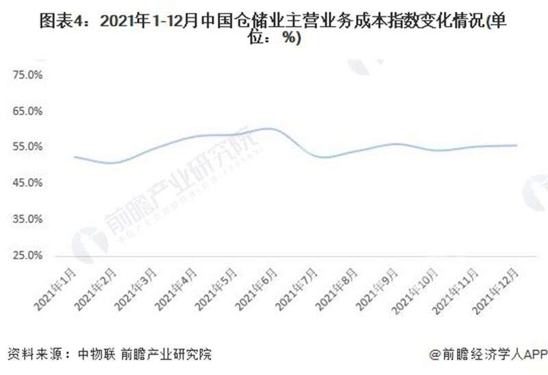 根據(jù)中國(guó)物流與采購(gòu)聯(lián)合數(shù)據(jù),2021年1-12月,中國(guó)倉(cāng)儲(chǔ)業(yè)主營(yíng)業(yè)務(wù)成本指數(shù)均值為55.3%,同比增長(zhǎng)3.1個(gè)百分點(diǎn),顯示2021年倉(cāng)儲(chǔ)行業(yè)成本支出增速有所提升,企業(yè)經(jīng)營(yíng)壓力較大,倉(cāng)儲(chǔ)行業(yè)降本增效仍需進(jìn)一步夯實(shí)。
