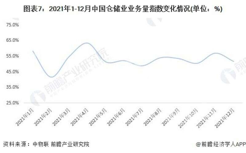 根據(jù)中國(guó)物流與采購(gòu)聯(lián)合數(shù)據(jù),2021年1-12月,中國(guó)倉(cāng)儲(chǔ)業(yè)務(wù)量指數(shù)均值為53.1%,同比增長(zhǎng)0.7%,整體位于枯榮線(50%)以上,反映出倉(cāng)儲(chǔ)行業(yè)需求在企業(yè)生產(chǎn)活動(dòng)加快和消費(fèi)品需求保持回升的背景下,仍保持較為穩(wěn)定的態(tài)勢(shì)。